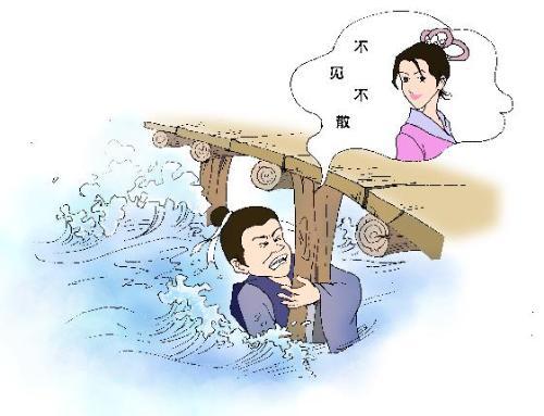 出处 相传古代尾生同一女子相约在桥下见面。他等了很久,不见女子到来,这时河水猛涨,淹没桥梁,尾生为了坚守信约,不肯离去,抱住桥柱,淹死在水里。后以喻坚守信约。