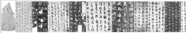 标题通栏照片为从商代至清代中国书法的部分代表作品,依次是:商代甲骨文刻辞、西汉马王堆帛书、东汉《礼器碑》、东晋陆机《平复帖》、北魏《张猛龙碑》、东晋王羲之《丧乱帖》、北魏《郑羲下碑》、隋代智永《真草千字文》、唐代欧阳询《卜商帖》、唐代怀仁《集王书圣教序》、唐代孙过庭《书谱》、唐代颜真卿《祭侄文稿》、唐代柳公权《神策军碑》、宋代苏轼《黄州寒食诗帖》、宋代米芾《蜀素帖》、元代赵孟頫《种松帖》、明代董其昌书唐人诗、明代八大山人行书、明代傅山行书、明代张瑞图行书、清代刘庸七言诗、清代金农题画佛和清代赵之谦的书法作品。