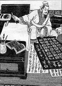王羲之练习书法的插图。借鉴前人的经验,是学习书法的重要途径。