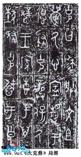《大克鼎》,铭文二十八行,二百九十字,字迹特大,结体修长峻拔而具端穆之致。由于铭排列于界格之中,书风乃由自然而趋于整饬,是金文中的皇皇巨著。