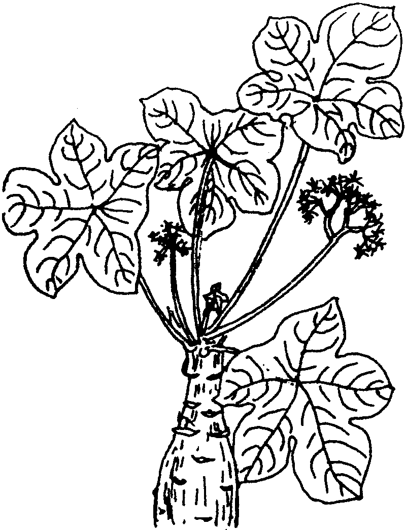 玉树珊瑚为大戟科麻风树属落叶小灌木。株高40~50厘米,茎直立,膨大。叶大,盾状,近圆形,3~5裂,叶绿色。全年开花,花及花柄朱红色。蒴果椭圆形,种子黑褐色。