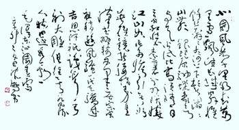 毛泽东在继承传统的基础上形成了独具特色的书风。如果把历史长河中所涌现出的书法大家们比喻为“秦皇汉武”、“唐宗宋祖”,那么正是“俱往矣,数风流人物,还看今朝”的豪情与胆识,塑造了毛泽东那独步书林的。而歌咏天地间的丰富情感,也更加增添了毛泽东书法的恒久魅力。