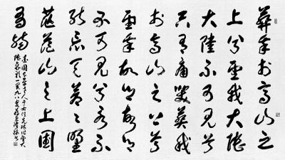 ?于右任曾指出:“必须以神蜕自主才能成家。”蒋思豫学于体从形似到神似,按自己的理解,逐步形成了朴茂厚实、简捷凝炼、运转持重又大气磅礴的草书风格。他的篆隶各体,也均有不俗功力:篆书质朴凝炼、格调高古;隶书结字工稳、平实古雅。胸襟的开阔与心气的平和,在他的书法作品中得到了充分的体现。
