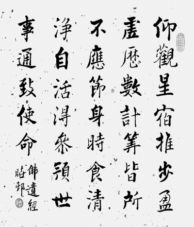 ?他的书法同好,北仑中学副校长李华斌先生曾赋诗一首赠与蒋老:自号孑遗隐市间,人书俱老益沈潜。弼时驱策八千里,悬命南冠三十年。群鲫过江遁有路,将军解甲归无田。两朝劫难多谈助,笑看烟霞风满天。