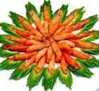 2.取鲜河虾洗耳恭听去杂质,去虾枪、须、腿,放入用葱、姜、花椒、料酒、精盐、味精调制的卤汁中,用小火烧至锅边起泡虾已变色时,捞出晾凉,装在盘内的空心圈内即成 。