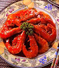 2)烧红锅,下油,爆香姜及葱,放入明虾两面煎至金黄五层熟,加入料酒,盐,少许清水加盖焖三分钟加番茄酱烧至汁浓,即可上盘;
