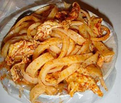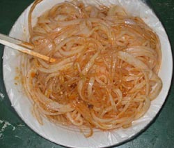 凉皮一般是凉吃的,近年有好事之人把凉皮热着吃,即现蒸现吃,故有人称其为热面皮,味道很特殊,颇受市场青睐。看来任何小吃也不是一成不变的,都在不断发展变化的。