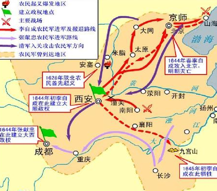 第三,李自成本身实力并不强。李自成虽然占领了北京,崇祯都被逼的自杀了,但这并不能说明什么。纵观明朝末期的起义,起义军根本就不是明朝的对手。只要明朝稍微用一点军队,这些起义军几乎都被剿灭的差不多。而李自成后来之所以能占领北京,并不是说自己多能打,或者多得民心。最主要的是明朝军队的主力都用来对抗清军了,说白了明朝是多面作战。也正因如此,李自成才有机会占领北京的。