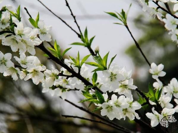 相逢二句就以用典的手法刻画白桃花的高雅。陶渊明的《桃花源记》中说:武陵人捕鱼为业,缘溪行,忘路之远近。忽逢桃花林,夹岸数百步,中无杂树,芳草鲜美,落英缤纷。显然渊明笔下的桃花是色彩鲜艳的,然而王丹林所咏的是白桃花,所以说那不是武陵村中之物,反而类似于托根于孤峰的梅蕊。孤山本是宋代高士林逋的隐居之地,他有梅妻鹤子之称,这里暗用其事,说明白桃花仿佛梅花,淡泊素雅,神韵超绝,其品第远在红桃之上,这里不仅指其颜色的异乎寻常,同时表现了白桃花不是村野之物,而为清高绝尘之品。