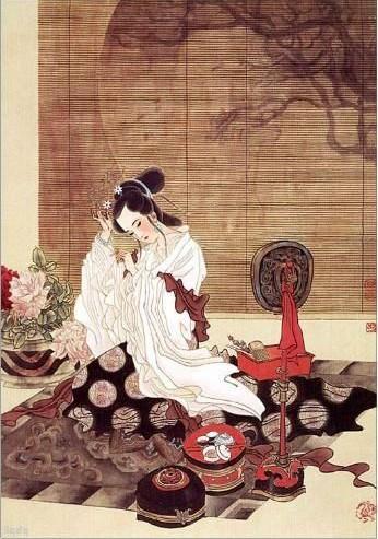 第三层“新妇起严妆”这一节,是全诗最精彩的段落之一。作者写兰芝辞归,既没有描述她如何泪流满面、叹息不止,也不去抒发她无端被遣的债懣和不平,而是用大量笔墨来写她的美丽形态、华贵装饰,以及告别时不卑不亢、从容既定的举止和风度,透过这个华采乐段,奏出了作者正义的心声:这位新妇不但勤劳能干、忠于爱情,而且是举世无双。那位“可怜体无比”的东邻女,不但缺乏兰芝高尚的心灵,也没有她如此美丽的外貌。焦母竟然把这样的媳妇驱遣回家,真是太蛮横无理了。值得注意的是,作者在描绘兰芝严妆时,还有意先叙“著我綉夹裙,事事四五通”,然后再叙其如何穿戴打扮。有人认为这是诗序上错乱了,这两句应在“耳著明月珰”之后,其理由是:“既然说事事四五通,就不只一事,理应包括后面的躡履、戴簪、著衣诸事。而论次序,下床应先著鞋,然后再梳头、换衣,最后著裙”(《余冠英《乐府诗选》》。我认为这并不是诗序错乱,而是我国古典诗歌中常用的倒装法。在本诗中,这种倒装法在表现主题、塑造人物形象上,至少有以下三个作用:首先强调「事事四五通」,极力渲染兰芝在遭侮辱、被驱遣之时,仍刻意修饰,她不愿蓬头垢面见焦母,也不愿哭哭啼啼离夫门,而要以「精妙世无双」的形象去辞行,这就更加表现出她在恶势力面前,不愿俯首乞怜的倔强性格;其次,因为兰芝对仲卿还是心怀眷念、依依不捨,所以临行时,强调她对一衣一饰著而复脱,下意识延宕时间。「事事四五通」,意在藉此延迟离别时刻的到来,表现了兰芝不忍离去、又不得不离去的极为痛苦矛盾的心情;再次,强调兰芝对衣著反覆穿戴数次而不得妥贴,也活画出兰芝在与仲卿离别时,极度的心烦意乱之状。总之,这段描述极为精妙,表现了作者高超的艺术技巧。