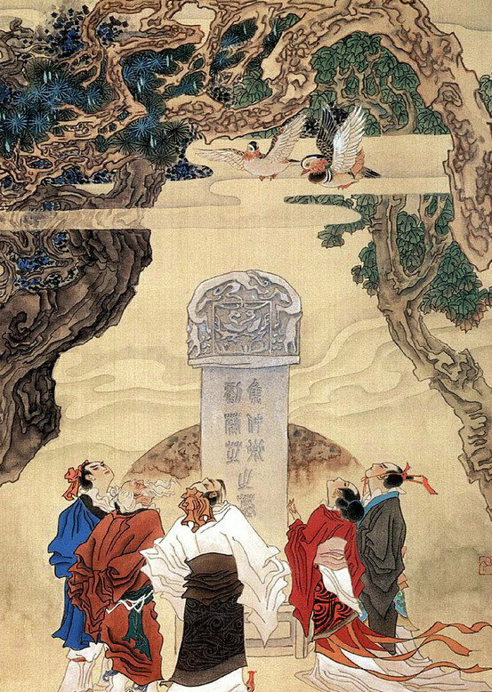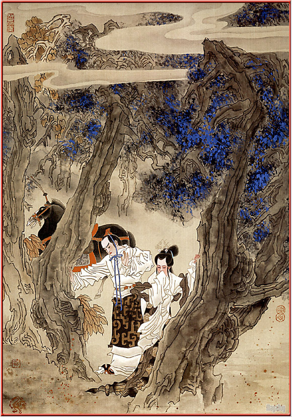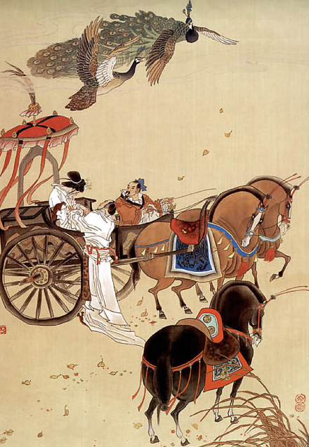 “府吏马在前”二节是第四层,主要是记述兰芝与仲卿分别时对天盟誓、依依难捨的情形。这段在结构上产生了两个作用:一是再次强调了这对新婚夫妇感情上的互相理解、互相眷念,他们的分离是被逼的,是封建家长制这座大山横亙在中间的结果。他们在分手前指天为证,誓不相负,这就为后面他俩的殉情奠下了基石。二是在分别之前,兰芝既表白了对爱情的坚贞,也表露了对前途的忧虑,担心自己那个性情暴烈的兄长「恐不如我薏」,这也为后面的兄长逼嫁、以死践盟等情节埋下了伏笔。因此从情节发展来看,这是个必不可少的过渡段落。