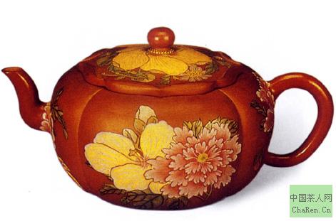 清康熙·宜兴紫砂胎珐琅彩四季花卉葵花式茶壶