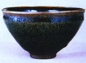 建窑鹧鸪斑星盏宋由于斗茶需要比较水痕,颜色较深的建窑瓷成为了宋代流行的茶具。