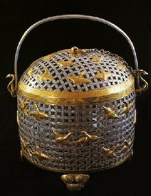 金银丝结条笼子——唐用于炙烤茶饼