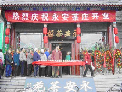 该茶庄所售自制拼配的茶叶馥郁芳香,独具特色。现代著名爱国诗人、书法家于右任先生所书的“永安茶庄”匾额悬挂在厅内,给茶庄增添了很多色彩。于先生的书法熔楷、隶、行、草于一炉,笔力潇洒刚劲,吸引了不少顾客前来欣赏。永安茶庄因此而声名远扬,顾客盈门,生意兴隆