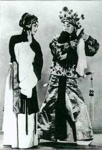 ?俞振飞(1902—1993),江南昆曲名家俞粟庐之子。自幼秉承家学,用功刻苦,能唱二百余折昆曲戏。1931年,俞振飞在暨南大学担任讲师,经程砚秋再三约请,始才从艺。北上后拜在程继先门下,专门学习京剧小生,加入秋声社。由于他的昆曲演唱造诣精深,对于京剧小生的唱法、念白,在发声、用气、吐字、行腔方面帮助极大。尤其是他在表演中所显露出的书卷气,为一般演员所不及。他演纱帽生、扇子生和穷生戏,如《奇双会》饰赵宠、 《玉堂春》饰王金龙、 《断桥》饰许仙、 《打侄上坟》饰陈大官、 《鸿鸾禧》饰莫稽等唱念与神情,较之其师毫无逊色。他演出《群英会》、《辕门射戟》一类维民生戏,英武之中带有儒雅风度。尤其是在《群英会》“对火字”和“打盖”两场戏中扮演周瑜的表演,刻画人物细致入微,炉火纯青,可以说是胜过前人。他与程砚秋合作,扮演《红拂传》中的李靖、《春闺梦》中的王恢、《梅妃》中的唐玄宗相得益彰;与梅兰芳合作,扮演《奇双会》中的赵宠、 《断桥》中的许仙、 《游园惊梦》中的柳梦梅相映成辉,均堪称人间绝唱。