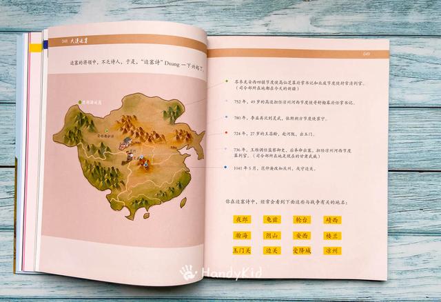 即让孩子摆脱诗词学习的碎片化,又启发孩子主动寻找诗词中的联系和规律,培养思考力和归纳能力。二、多形式讲解,提高阅读趣味性。通过文字、地图、时间坐标、图表、图画等多种形式,让孩子轻松阅读、快速领会。