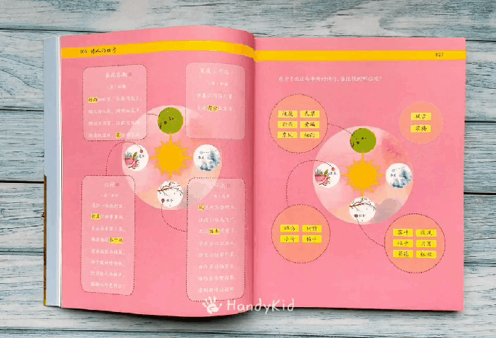 第二、第三册通过分享古诗中常见的意象、场景、时令、数字等,将古诗清晰地分门别类,孩子学起来思路更清晰,架构更完整。