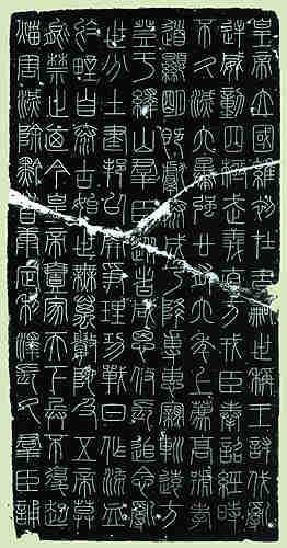 秦代的统一文字:小篆,使汉字的笔画和结构得到定型,奠定了汉字"方块形"的基础。图为秦丞相李斯书写的《峄山刻石》。