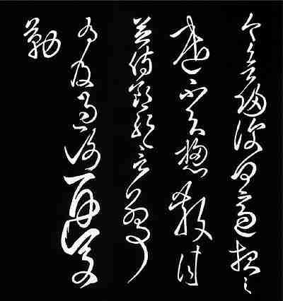"狂草"是唐代(618-907)人张旭所创。"狂草"极难辨认,但却有很高的艺术欣赏价值。图为《张旭狂草图》
