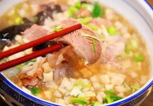它烹制精细,料重味醇,肉烂汤浓,肥而不腻,营养丰富,香气四溢,诱人食欲,食后回味无穷。因它暖胃耐饥,素为西安和西北地区各族人民所喜爱,外宾来陕也争先品尝,以饱口福。牛羊肉泡馍已成为陕西名食的“总代表”。