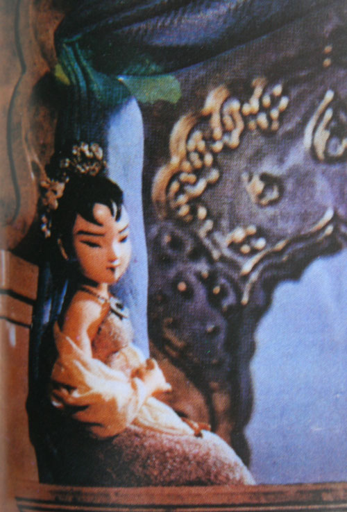 木偶电影《孔雀公主》剧照图片来源:《中国木偶艺术》? 《孔雀公主》是根据傣族叙事长诗《召树屯》改编的抒情长片,放映时间达80分钟,该片成功的再现了西双版纳秀丽的湖光山色和傣族人民多姿多彩的生活风貌,情节曲折生动,扣人心弦。缠绵的爱情与尖锐的宫廷斗争交织在一起。该片的人物造型把古朴、飘逸的中国画的写意性与精巧、洒脱的工艺制作的装饰性统一和谐的融合在一起,使人物形象洗练、生动、栩栩传神,富有中国古典人物画的美感