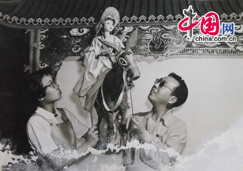 路夷和关维吉学习四川民间木偶艺术《小放牛》