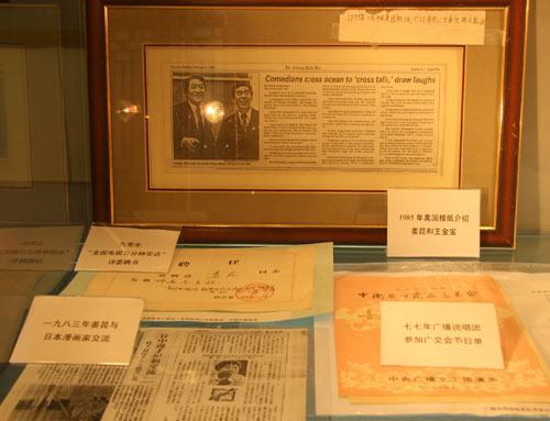 姜昆与马东参观展览中国曲艺家协会和中华曲艺学会主办的“相声百年展”将于2008年9月26日至11月7日在北京版权服务中心开展。9月20日,中国曲艺家协会分党组书记副主席姜昆、中国曲艺家协会分党组成员副秘书长刁惠香、中华曲艺学会秘书长常祥霖以及“侯、常、马”曲艺世家代表、北京曲艺团代表和天津相声界代表出席了发布会..