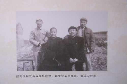 抗美援朝战斗英雄杨顺德、姚文宗与常连安、张寿臣合影(照片翻拍:姜一平 )
