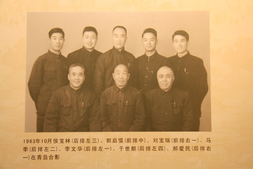 1963年10月侯宝林(后排左三)、郭启儒(前排中)、刘宝瑞(前排右一)、马季(后排左二)、李文华(后排左一)、于世猷(后排左四)、郝爱民(后排右一)在青岛合影。