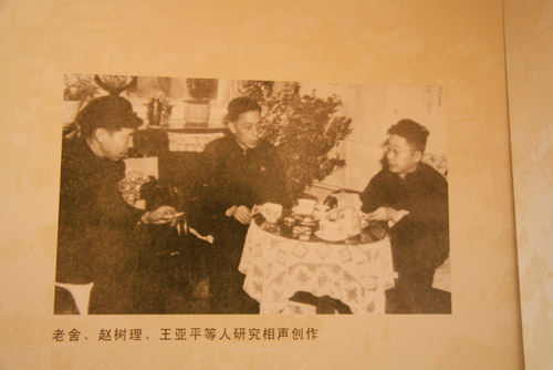 老舍、赵树理、王亚平在一起研究相声创作(照片翻拍:姜一平 )