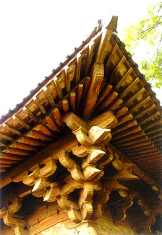唐亡以后的五代,虽然政权更替频繁,战事不断,但各地仍在修理寺刹,如山西平顺的大云院和平遥的镇国寺。这两座寺院至今仍存有五代的遗构。大云院在龙耳山的山腰,建于后晋天福三年(938年),原名仙岩院,宋改今名。院内的大佛殿系初建时遗构,尚有当年的壁画。而镇国寺建于北汉天会七年(963年),系皇家敕建,布局严谨,其万佛殿的檐、柱、斗拱做法巧究,殿内佛像面庞丰润,身躯壮实,具有五代风貌。