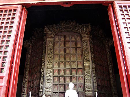 此寺位于北京市区东城,是明正统八年(1443年)太监王振所建私庙。寺的布局在明代佛寺中很有代表性。山门内钟鼓楼左右对峙;经天王殿而进是正殿,正殿内供释迦佛及罗汉二十尊;殿前两侧东为大智殿,内供观音、文殊、普贤、地藏四菩萨像;西为轮藏殿,殿内转轮藏现尚好;正殿之后是一座楼阁,下层称如来殿,上层四壁木龛内有小佛像九千余尊,故称“万佛阁”。