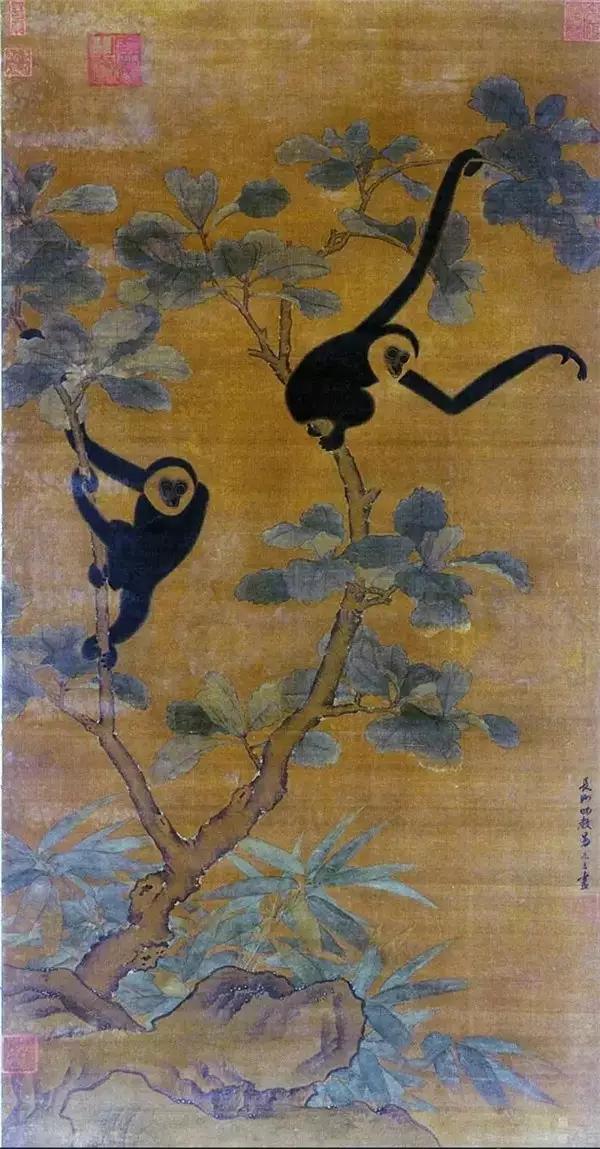 《树上二猿图》,绢本设色墨笔,190.8×100.2厘米,北宋·易元吉,弗利尔美术馆藏。