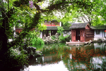2.江南类型南方人口较密集,所以园林地域范围小;又因河湖、园石、常绿树较多,所以园林景致较细腻精美。因上述条件,其特点为明媚秀丽、淡雅朴素、曲折幽深,但究竟面积小,略感局促。南方园林的代表大多集中于南京、上海、无锡、苏州、杭州、扬州等地,其中尤以苏州为代表。
