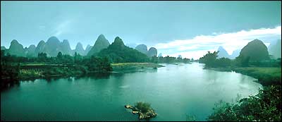 桂林漓江桂林地区属岩溶地貌。据地质研究,大约在三亿多年前,桂林原是一片汪洋大海。由于地壳运动,海沉积的石灰岩上升为陆地,后经风化和溶蚀,终于形成了神姿仙态的峰林,幽深瑰丽的溶洞和神秘莫测的地下河。这些特殊的地貌与景象万千的漓江及其周围美丽迷人的田园风光融为一体,形成了独具一格、驰名中外的 “山青、水秀、洞奇、石美”的“桂林山水”,并有了“桂林山水甲天下”的美誉。