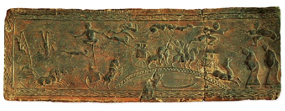 二为拱式桥。拱式桥见于画像石者有多例。桥拱表现为弧线形,这在交通上是比较合理的。汉代之拱桥,虽历史文献中全无线索,但画像石上所刻图像恐难出于虚构,惟有待日后发现实物予以证实。