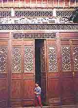 过了石板桥进入村里,向导小胡找来了村长给我们引路。据村长介绍,这个村庄分两部分, 相隔1公里, 共有200多户人家。村里的房屋多系明清(公元1368-1911年)建筑。 我们跟随村长从路面铺满青石的小巷中穿来穿去。小巷曲曲折折,走在其间分不清东西南北。屋前屋后搭有瓜架,种有果树,环境恬静、幽雅。