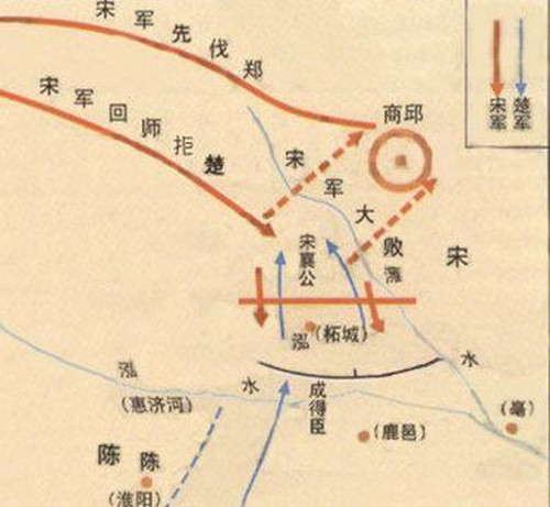 宋襄公霸主没坐成还被楚国抓了去,心里越想越气。回国后又听说郑国支持楚成王做诸侯霸主,有气不打一处来,就决定发兵攻打郑国。周襄王十四年(前638年)冬,宋襄公亲征郑国,郑国赶忙向楚国求救,楚国派出大将成得臣援助郑国,两军在泓水相遇。