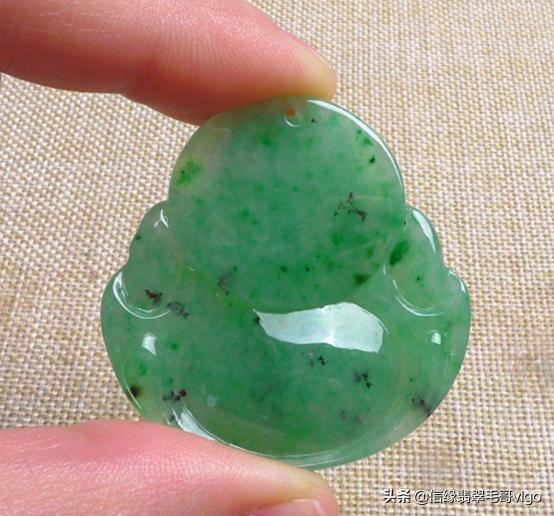 另外在质地细腻水头较足的老种翡翠容易出现黑点,且在浓绿翡翠中较常见,浓绿色会掩盖部分黑点使其不明显。此时翡翠带有黑点就成了代表翡翠种老的标志,虽然这个标志并不是普遍现象。