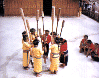 “舂石音”是邵族最具特色的文化风采,更是丰年祭仪中最重要的一部份,当族人在头人家舂起石音时,正是邵族丰年祭的前奏。