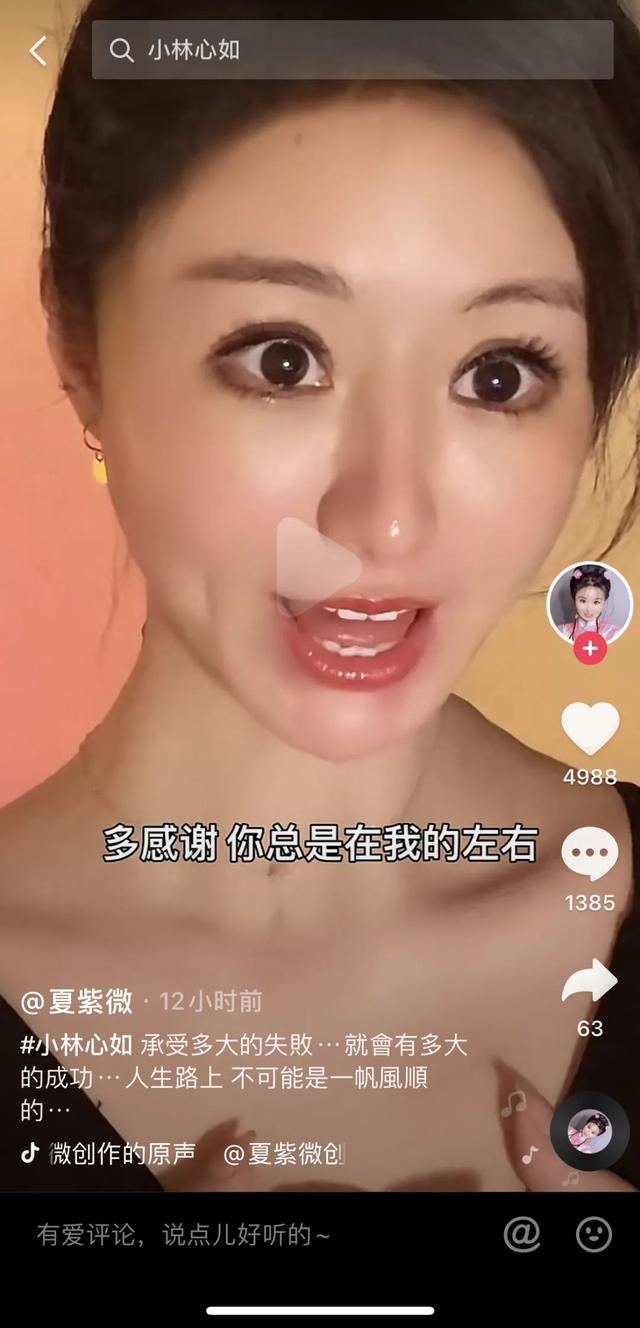 “小林心如”被媒体报道后,已经修改网名为“夏紫微”,还发布了“人生不可能是一帆风顺”、“人生没有挫折就没有辉煌”等现代装的视频,似是对外界质疑的回应,但其文案中仍带有“小林心如”的标签。