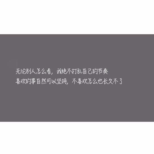 5 不管全世界所有人怎么说,我都认为自己的感受才是正确的。无论别人怎么看,我绝不打乱自己的节奏。喜欢的事自然可以坚持,不喜欢怎么也长久不了。