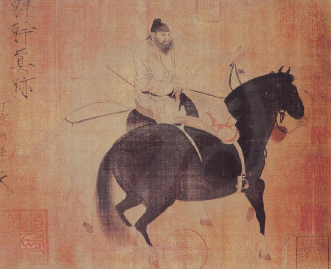 韩干,陕西蓝田人,活动于玄宗时代。少贫,得王维资助,遂习绘画,擅画马,师曹霸。其作品《宣和画谱》著录52件,题材全是画马,现仅存《牧马图》和《照夜白》。