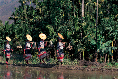 花腰傣人自称“傣雅洛”,意思是“迁徙中的落伍者”。这个美丽的民族来自何方,又要去何处,如今已无法确切知晓。有人言他们是古滇国的遗贵,也有人言他们源于古代的百越,还有人言他们是编织爱情的民族……