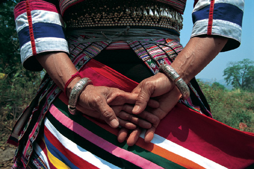 这些衣服看起来好看,穿起来却非常复杂。要想穿齐一整套衣服据说要花上一个上午的时间,而且是在一个有经验的伙伴的协助下才能完成。单凭这一点,就让人不得不相信花腰傣可能真的是那支掉了队的百越贵族。
