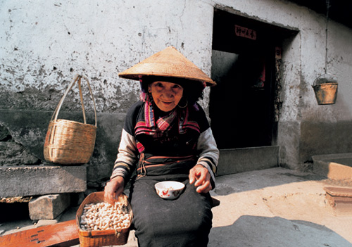 听着传奇的故事,念着花样的腰带,不知不觉就到了哀牢山的心腹地带新平。这里居住着大约15万的花腰傣,占全国傣族人口的13%。在这里找不到印象中典型的傣家竹楼,到处看到的却是用土夯起来的“土掌房”。这种房子的四面都是用黏土夯成的。一般是两层、平顶。上层是用来住人,外面有一个阳台,供人们休息、晒东西。下层是拿来烧饭、待客,或是堆放杂物。听当地人说,当他们的祖先决定在这里定居后,就按着河谷内的先民(彝族人)的房子,依葫芦画瓢地建起来这种少有的傣家民居。