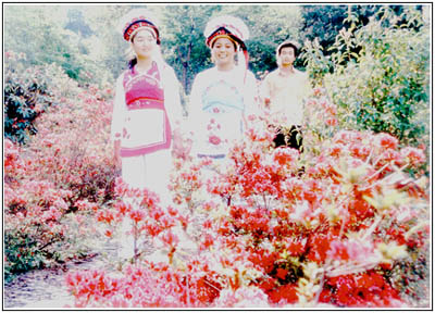 白族是一个爱花的民族。“大理三干户,户户养花”,山茶花,马樱花、杜鹃花、兰花,各种花卉,四季而开。其中最有名的花要数苍山的杜鹃花、报春花和古城园林培植的山茶花。“云南茶花甲天下”,大理就占了40多个品种,早桃红、松子壳、牡丹茶、紫袍、玛瑙、恨天高等等,千姿百态,妙趣横生。古人赞道:“绿叶红英斗雪开,黄蜂粉蝶不曾来。洱海珠树无颜色,羞把琼枝照玉台。”在白雪耀眼的苍山下,在碧波万顷的洱海边,千树万丛山花起舞,这不正是大理风光最引人注目的色彩吗?
