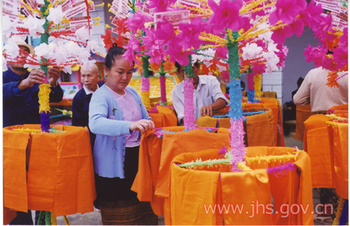 8.赕沙兰:在傣历十一月赕衣服、金银、生活用品给死去的父母和祖先,需时三天。