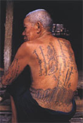 傣族有这样一句谚语:豹子、老虎都有花纹,男人没有花纹怎么行呢?按传统习俗,傣族男子到一定年纪都要文身,否则就被认为是背叛傣族先人,会受到歧视。且傣族男子都以文身多而美为荣,身上腿上不刺纹者,人格低下。这种男子常被人视为懦者,谈情说爱时常遭姑娘嘲笑,很难得到姑娘的爱情。因此,傣族男孩到了十四五岁便要文身、文腿。